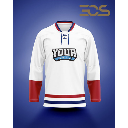 Design and customize your own hockey jersey in your team colors and with your own logos. Choose from 4 different collars. This Jersey is made in light and breathable 100% polyester with a tailored cut for better comfort and and with unlimited sublimated print in high quality and great detail.